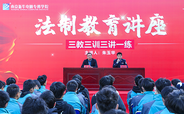 2020年11月12日上午,在南京新華電腦專修學(xué)院籃球場,九龍湖派出所朱所長,學(xué)院校區(qū)吳主任、學(xué)校全體學(xué)生共同參加。